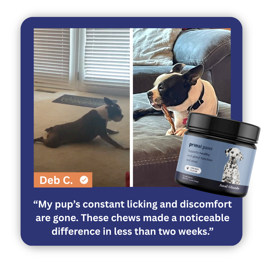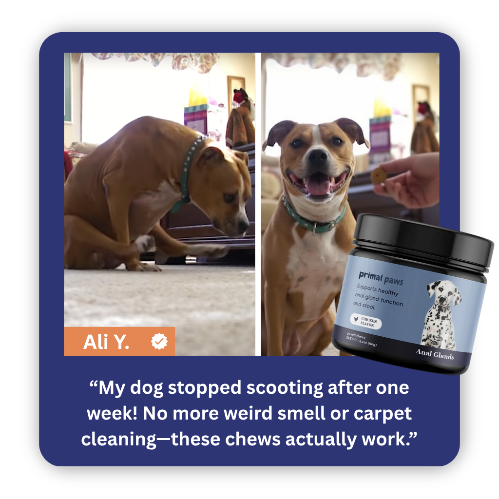 Absolutely. Our formula is designed to support natural gland emptying, reduce odor, and ease discomfort that causes scooting or licking.